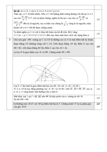 b) Đường tròn (KLD) cắt AB tại điểm thứ hai là T. Chứng minh CT là tia phân giác 2,0 của góc ACB.