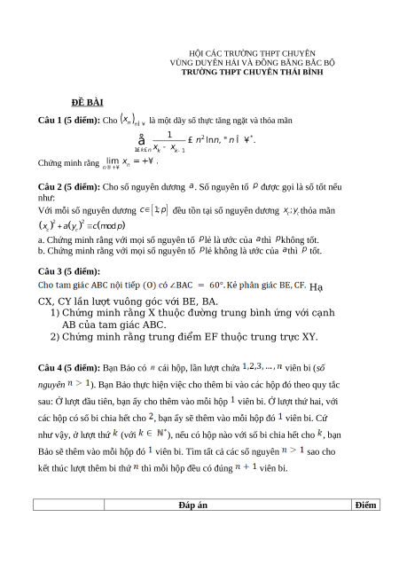 TRƯỜNG THPT CHUYÊN THÁI BÌNH ĐỀ BÀI