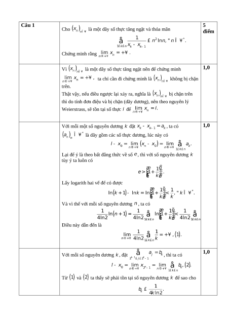 là một dãy số thực tăng ngặt và thỏa mãn điểm Chứng minh rằng Vì