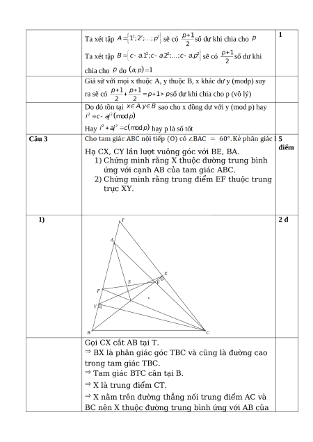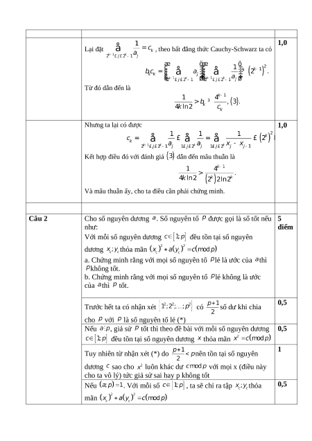 b. Chứng minh rằng với mọi số nguyên tố lẻ không là ước của thì tốt. Câu 3 (5 điểm): Hạ