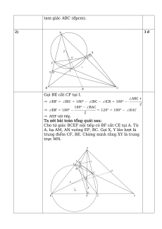 2) Chứng minh rằng trung điểm EF thuộc trung trực XY. 1) T 2 đ A X S E F Y B C Gọi CX cắt AB tại T.