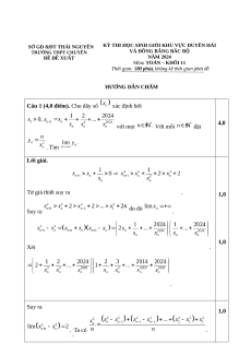 Câu 1 (4,0 điểm). Cho dãy số xác định bởi 4,0 với mọi Với mỗi đặt . Tìm Lời giải. Từ giả thiết suy ra . 1,0 Suy ra do đó . 1,0 Xét . . Suy ra 1,0 . Ta có . .