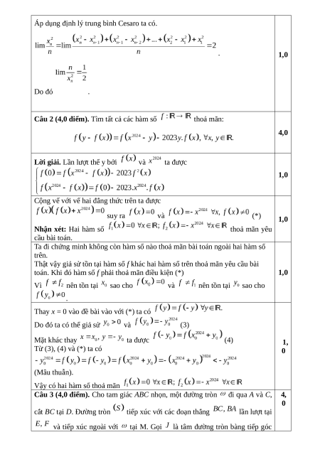 Câu 2 (4,0 điểm). Tìm tất cả các hàm số thoả mãn: 4,0