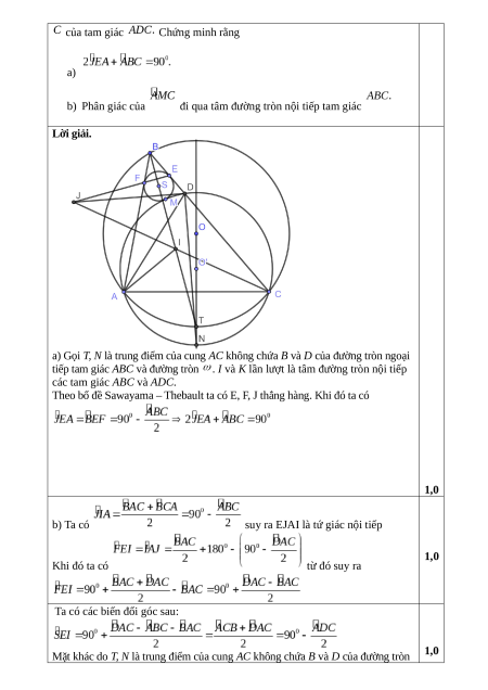 Mặt khác do T, N là trung điểm của cung AC không chứa B và D của đường tròn 1,0