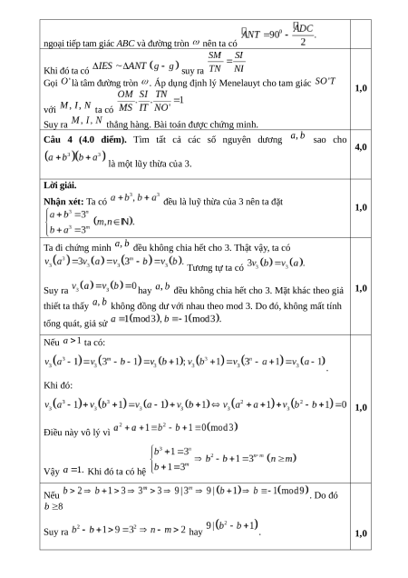 Câu 4 (4.0 điểm). Tìm tất cả các số nguyên dương sao cho là một lũy thừa của 3.