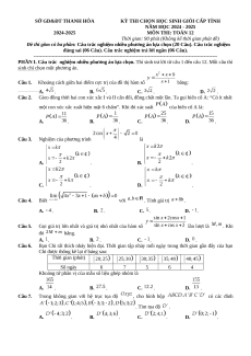 KỲ THI CHỌN HỌC SINH GIỎI CẤP TỈNH NĂM HỌC 2024 - 2025 2024-2025 MÔN THI: TOÁN 12