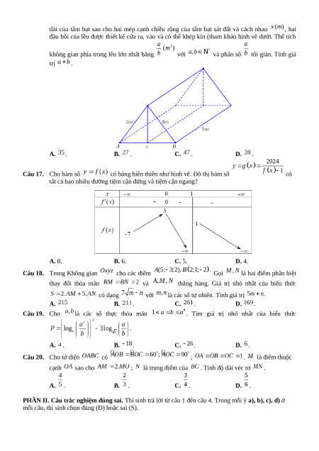và phân số tối giản. Tính giá trị . A. . B. . C. . D. . Câu 17. Cho hàm số