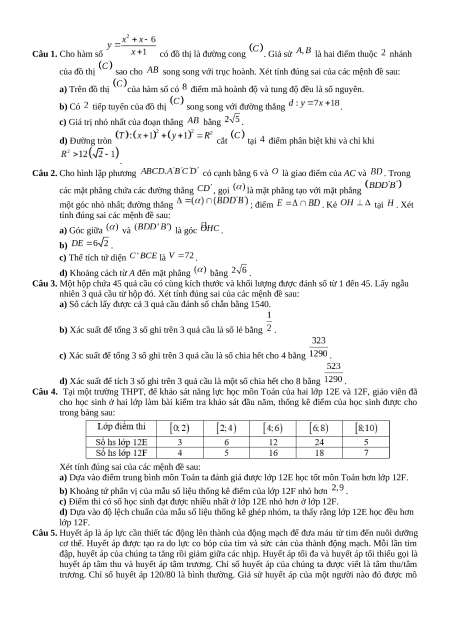 mỗi câu, thí sinh chọn đúng (Đ) hoặc sai (S). Câu 1. Cho hàm số