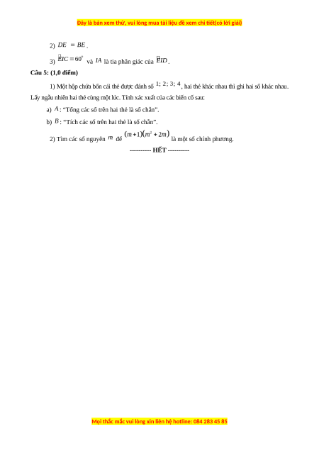 b) : “Tích các số trên hai thẻ là số chẵn”. 2) Tìm các số nguyên để