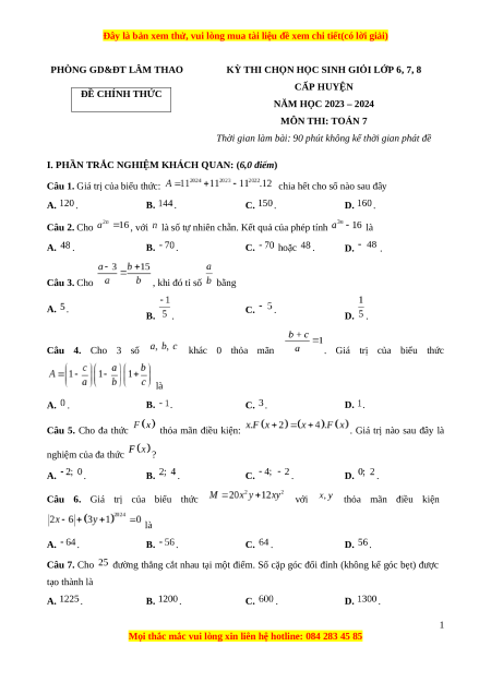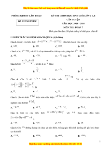 CẤP HUYỆN, NĂM HỌC 2023 – 2024 MÔN THI: TOÁN 7