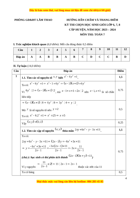 Mà là số nguyên tố nên 0,5 Ta có: Vậy 0,25