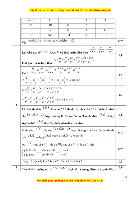 . Tính giá trị của biểu thức 2.2. Biết đa thức chia cho thì dư , chia cho thì dư , chia cho được thương là