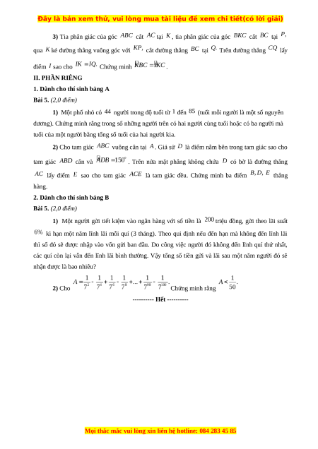 tuổi của một người bằng tổng số tuổi của hai người kia. 2) Cho tam giác