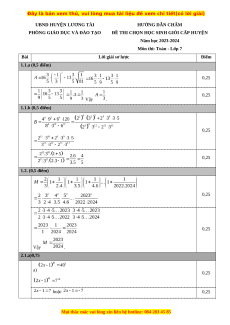 Lời giải sơ lược Điểm 1.1.a (0,5 điểm) 0,25 0,25 Vậy . 1.1.b (0,5 điểm) 0,25 12 10 2 .3 .15 2.6 4 11 11 2 .3 .2.3 1 0,25 3.5 5 1.2. (0,5 điểm) 0,25 0,25 Vậy . 2.1.a)0,75 a) 0,25 hoặc 0,25
