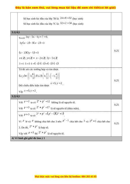 thì tổng số học sinh của cả ba lớp không đổi vẫn là 104 học sinh. 0,25