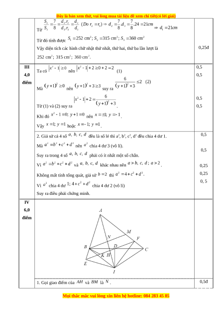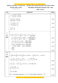MŨI NHỌN CẤP HUYỆN NĂM HỌC 2023 - 2024 MÔN: TOÁN 7 Câu NỘI DUNG Điểm 1. 0,5đ = 1,0đ 0,5đ = 2. I 4,0 điểm 0,5đ 0,5đ 0,5đ 0,5đ II 1. 4,0 điểm 0,25đ 0,5đ 0,5đ