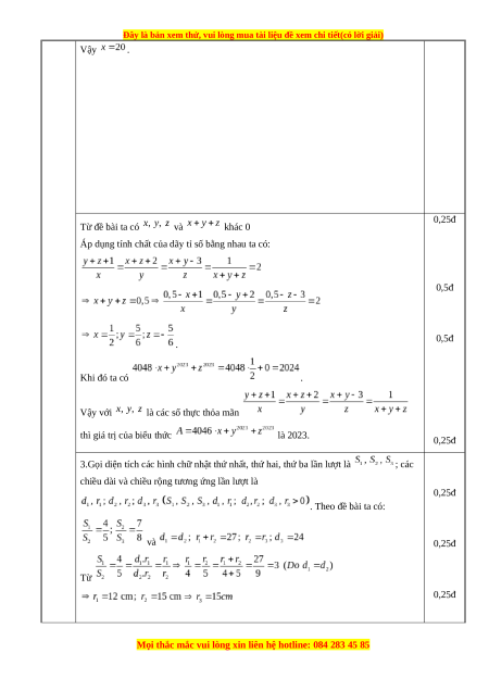 Vậy . 0,25đ Từ đề bài ta có và khác 0