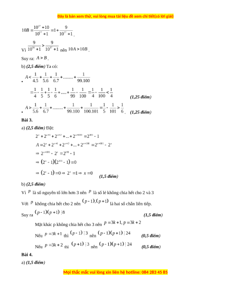 Mặt khác p không chia hết cho 3 nên Nếu thì nên (0,5 điểm) Nếu thì nên (0,5 điểm) Bài 4.
