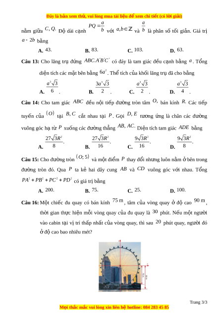 ủ vòng quay, thì sau 20 phút quay, ngư i ờ đó đ ở cao ộ bao nhiêu mét? Trang 3/3 M i