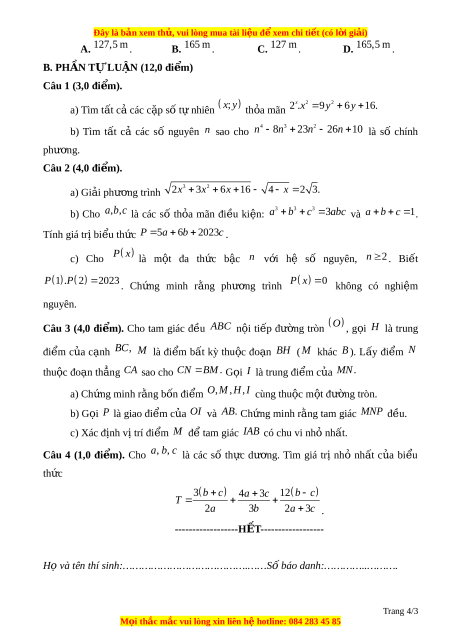 n 8n 23n 26n 10 là số chính phư ng. ơ Câu 2 (4,0 đi m ể ). a) Gi i ả phư ng ơ 3 2