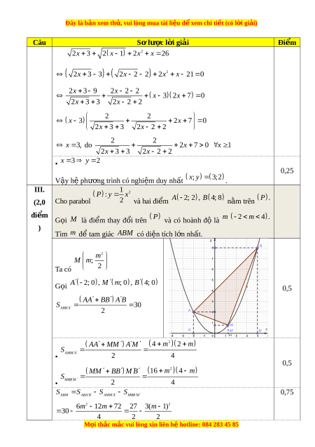 ệ đ xe ể m chi ti t ế (có l i ờ gi i ả ) Câu S l ơ ư c l ợ i ờ giải Đi m ể (4,0 Đi u ki ề ện: 3 2