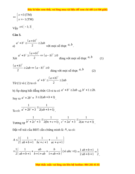 ệ đ xe ể m chi ti t ế (có l i ờ gi i ả ) x 3 (TM) x 1(TM) V y ậ x 1; 3 . Câu 3. a b 2 2 2 a b 2 ab a) 2 v i ớ m i ọ số th c ự a, b . a b2 a b