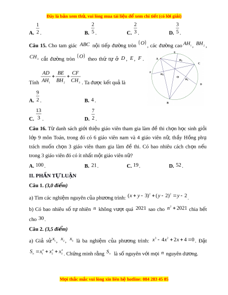 ệ đ xe ể m chi ti t ế (có l i ờ gi i ả ) S Ở GIÁO D C Ụ VÀ ĐÀO T O Ạ Đ Ề THI CH N Ọ H C Ọ SINH GI I Ỏ PHÚ THỌ NĂM H C Ọ 2020 - 2021 Môn: Toán – L p ớ : 9 Đ C Ề HÍNH TH C Ứ Th i ờ gian làm bài: 150 phút I. PHẦN TRẮC NGHI M Ệ