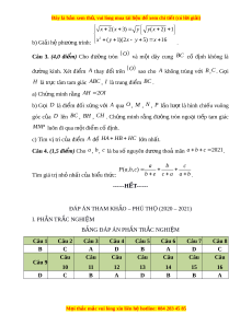 ĐÁP ÁN THAM KH O – PHÚ TH (2020 – 2021)Ả Ọ
