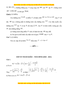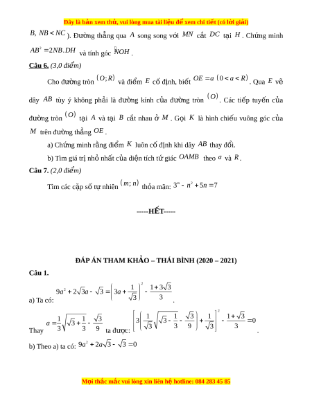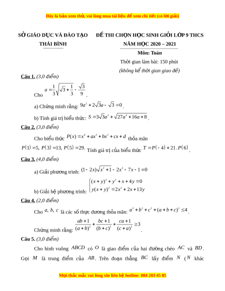 ệ đ xe ể m chi ti t ế (có l i ờ gi i ả ) S G Ở IÁO D C Ụ VÀ ĐÀO T O Ạ ĐỀ THI CH N Ọ H C Ọ SINH GI I Ỏ L P Ớ 9 THCS THÁI BÌNH NĂM H C Ọ 2020 – 2021 Môn: Toán Th i ờ gian làm bài: 150 phút (không k t ể h i ờ gian giao đ ) ề