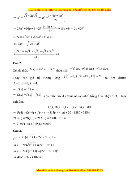 9a 2 3a 3 3 3 3 4 3 . Câu 2. 2 Xét đa th c