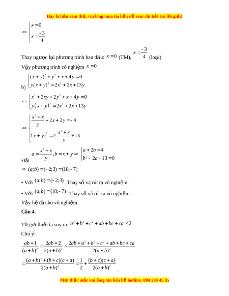 18; 7) . Thay số và rút ra vô nghi m ệ . V y ậ h đã cho vô nghi ệ m ệ . Câu 4. T gi ừ t ả hi t ế ta suy ra: 2 2 2