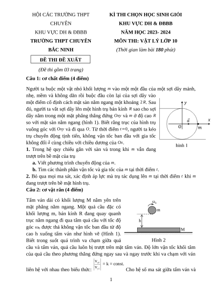 Đề thi HSG Vật Lí 10 Trường THPT Chuyên Bắc Ninh