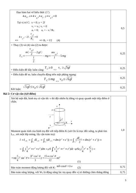 + Tại vị trí cao nhất của m2: 0,5 mv T C2 C= −mg R C (2)