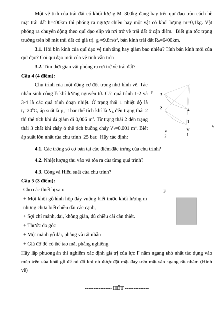 3.2. Tìm thời gian vật phóng ra rơi trở về trái đất? Câu 4 (4 điểm):