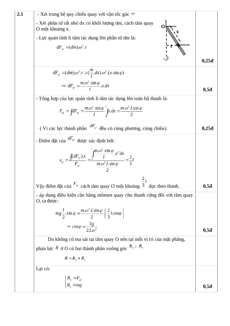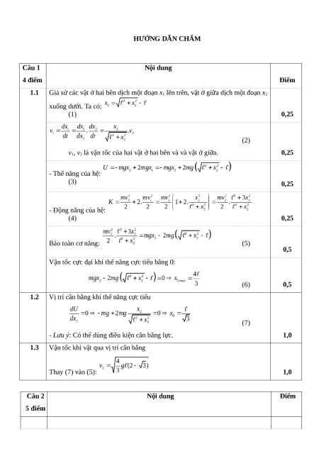 Vận tốc khi vật qua vị trí cân bằng Thay (7) vào (5): 1,0 Câu 2 Nội dung Điểm 5 điểm 2.1