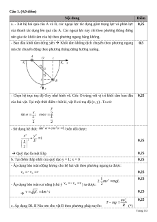 3. Tính áp lực của thanh lên quả cầu A và lực căng dây khi quả cầu B ở vị trí thấp nhất. Câu 2. (4,0 điểm)