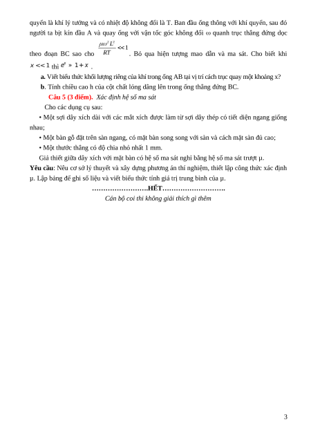 Câu 5 (3 điểm). Xác định hệ số ma sát Cho các dụng cụ sau: