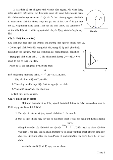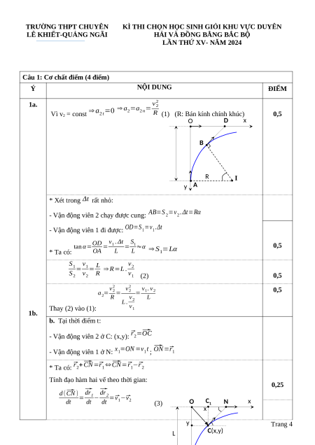 Câu 1: Cơ chất điểm (4 điểm) Ý NỘI DUNG ĐIỂM 1a. v2 ⇒ a =a = 2 Vì v =0 2 2 n R