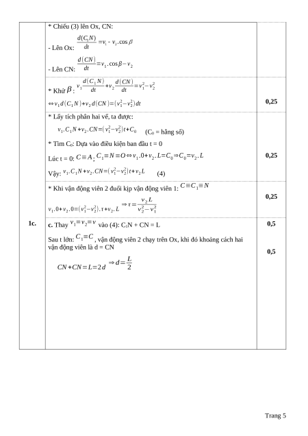 Tính đạo hàm hai vế theo thời gian: 0,25 d (⃗ CN ) ⃗ dr ⃗ dr = 1− 2=⃗ v dt dt dt 1−⃗ v2 (3) O C1 N x x y Trang 4 L C(x,y)