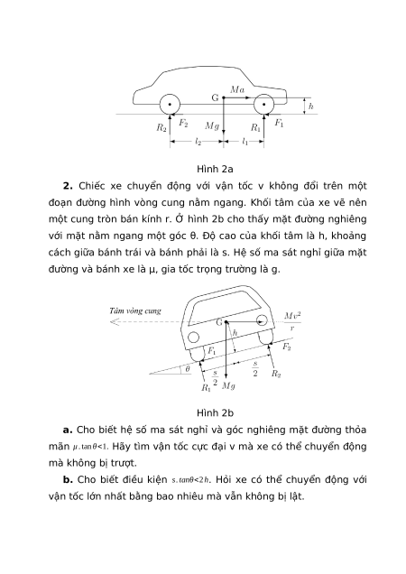 đường và bánh xe là μ, gia tốc trọng trường là g. Hình 2b