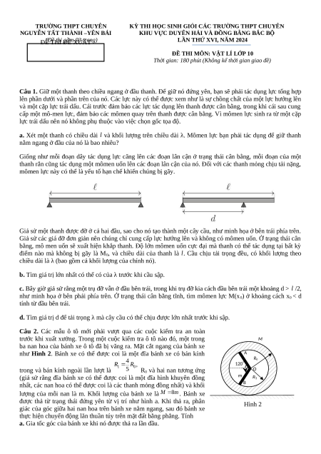 Đề thi HSG Vật Lí 10 Trường THPT Chuyên Nguyễn Tất Thành - Yên Bái