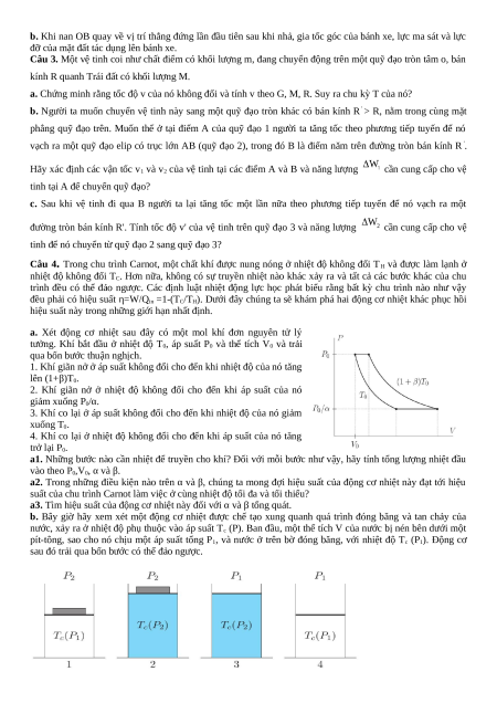 Câu 4. Trong chu trình Carnot, một chất khí được nung nóng ở nhiệt độ không đổi TH và được làm lạnh ở
