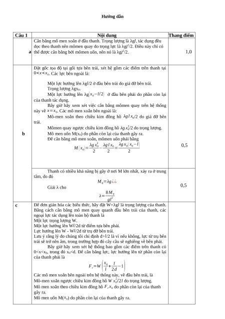 Mật độ của nước là 𝜌n=1g/cm3 và gia tốc của trái đất là Hướng dẫn Câu 1 Nội dung Thang điểm