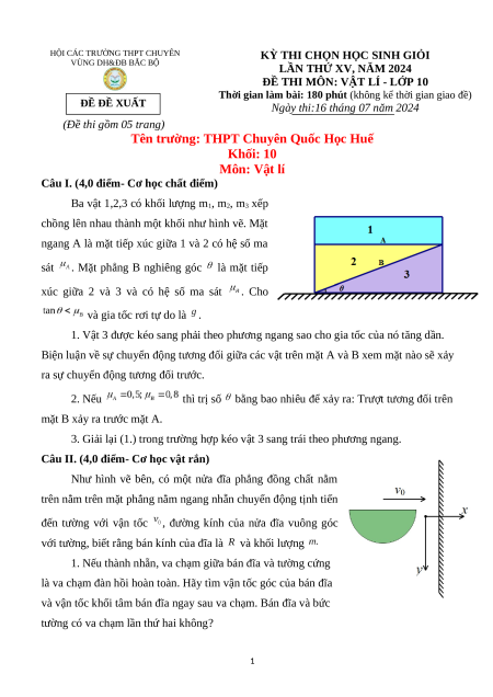 Tên trường: THPT Chuyên Quốc Học Huế Khối: 10 Môn: Vật lí