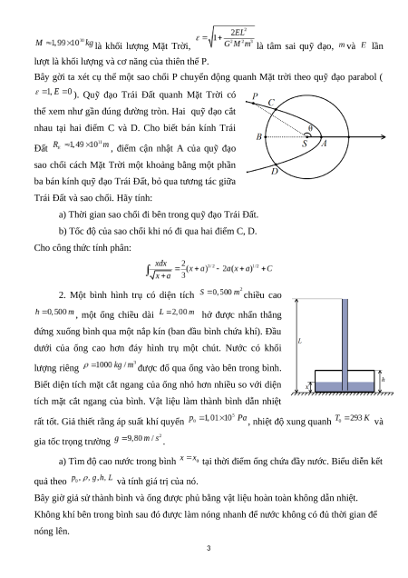 2. Một bình hình trụ có diện tích chiều cao , một ống chiều dài hở được nhấn thẳng