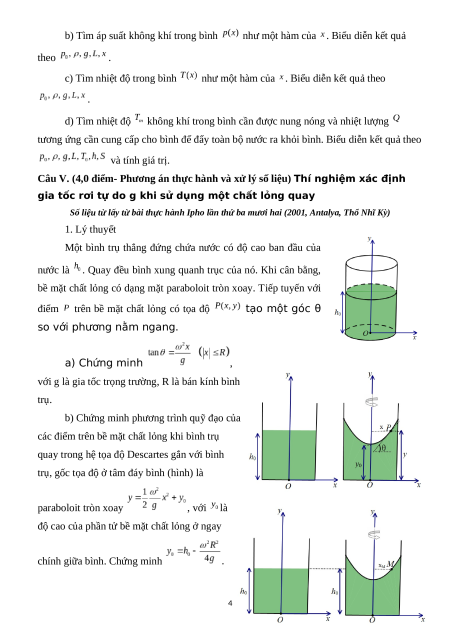 Câu V. (4,0 điểm- Phương án thực hành và xử lý số liệu) Thí nghiệm xác định