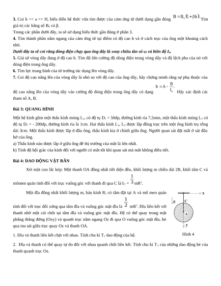 là H và bán kính của nó là a. Tại trục của ống dây đặt một thanh mảnh, hình tròn bán kính b h