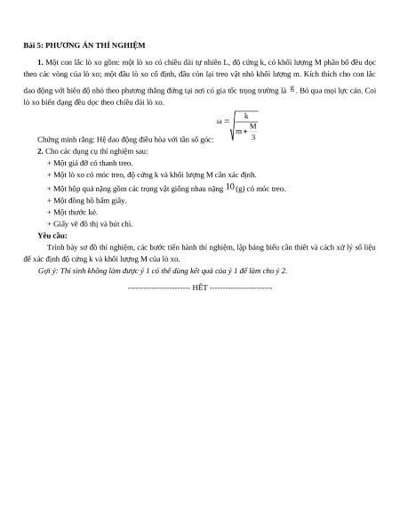 + Một lò xo có móc treo, độ cứng k và khối lượng M cần xác định.