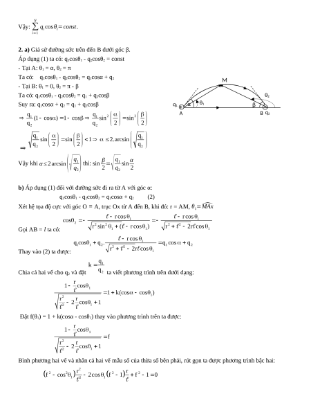 > 0) đặt tại các điểm A và B trong chân không. Xét một đường sức đi ra từ A có góc hợp bởi tiếp tuyến của