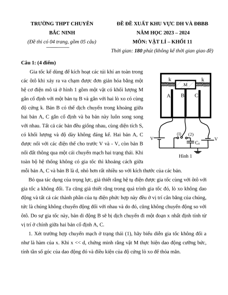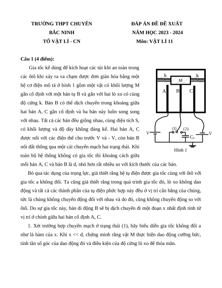 Đề thi HSG Vật Lí 11 Trường THPT Chuyên Bắc Ninh